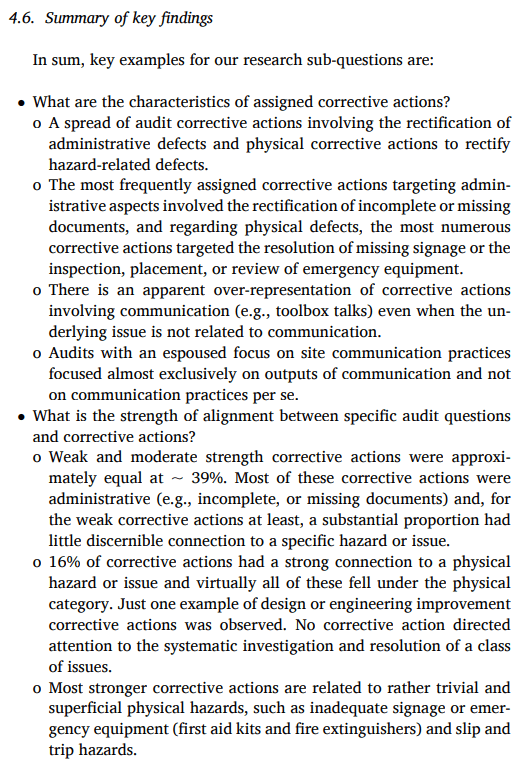 Taking a stab at summarising my study. This explored the findings from 71 audit reports (1st, 2nd & 3rd party) from a large Australian design and engineering construction and maintenance company in Australia.