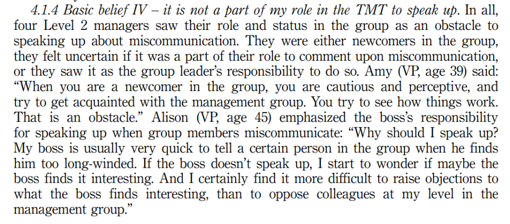 One thought on “What prevents senior executives from commenting upon miscommunication in top management team meetings?”