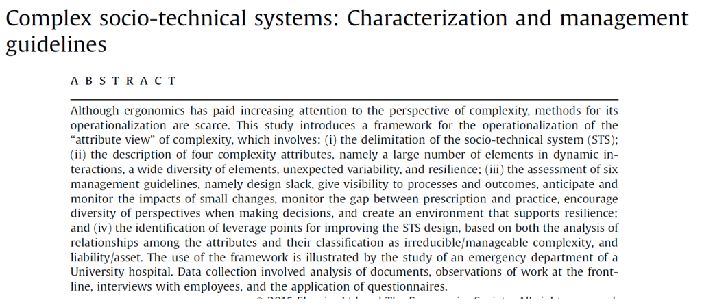One thought on “Complex socio-technical systems: Characterization and management guidelines”