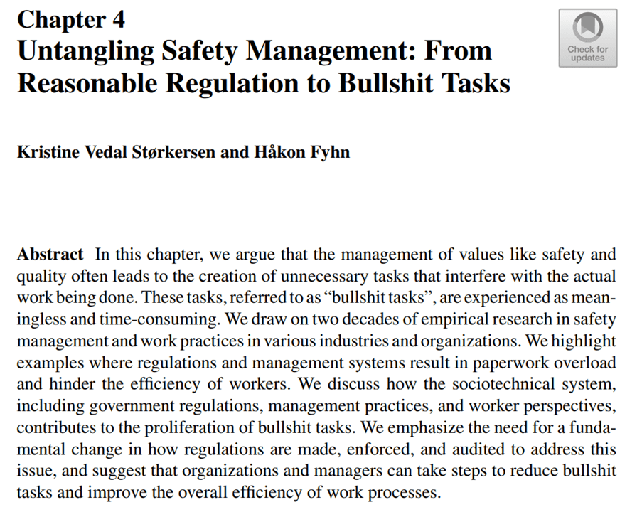 One thought on “Reasonable tasks, clutter and bullshit tasks in the pursuit of safety management”