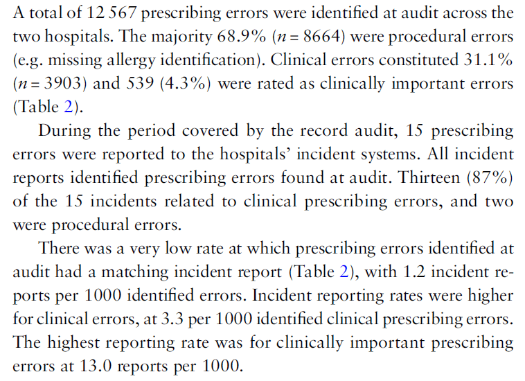 · >12k prescribing errors were identified during ‘audit’ (part of the observation of workers)