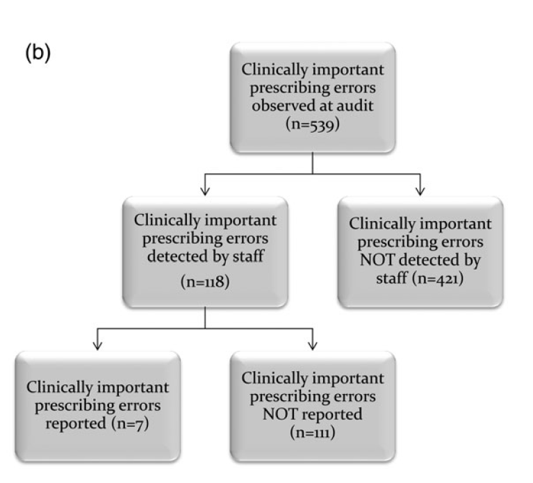 · Clinically important prescribing errors (ones that could be serious) were detected by staff at a rate of 218/1000, but only 13/1000 were reported