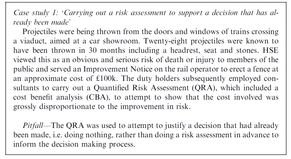 · Carrying out a detailed quantified risk assessment without first considering whether any relevant good practice was applicable, or when relevant good practice exists
