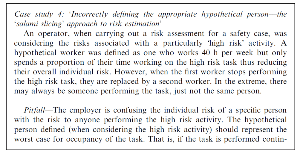 · Dividing the time spent on the hazardous activity between several individuals––the ‘salami slicing’ approach to risk estimation (image 5)