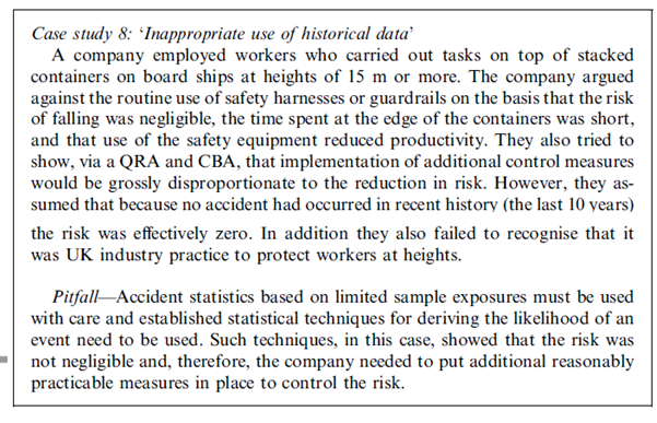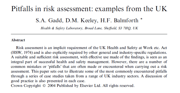 Ref: Gadd, S. A., Keeley, D. M., & Balmforth, H. F. (2004). Pitfalls in risk assessment: examples from the UK. Safety Science, 42(9), 841-857.