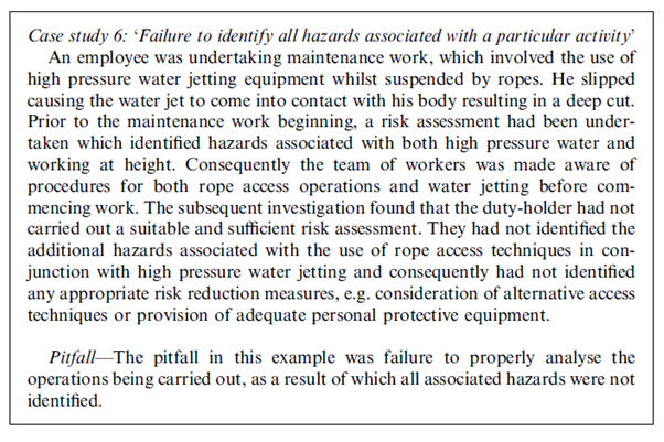 · Failure to identify all hazards associated with a particular activity – this suggests that while discrete hazards or energy sources may be identified, the particular pathways to failures may be missed
