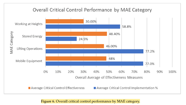 · When implementation and effectiveness were assessed by MAE, mobile equipment and lifting operations had the strongest CC implementation rate. Stored energy had the lowest implementation rate overall.