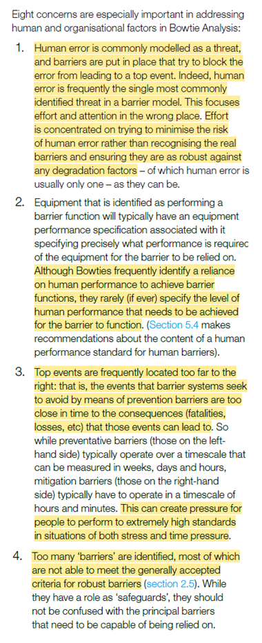 First they provide some concerns about human and organisational factors in bow ties (image 1):