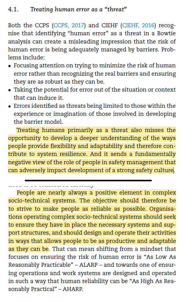 1. It’s misplaced to add “human error” itself as a threat, despite this being common. A focus on error places focus on its elimination, rather than on establishing robust barriers and ensuring that they perform where and when needed