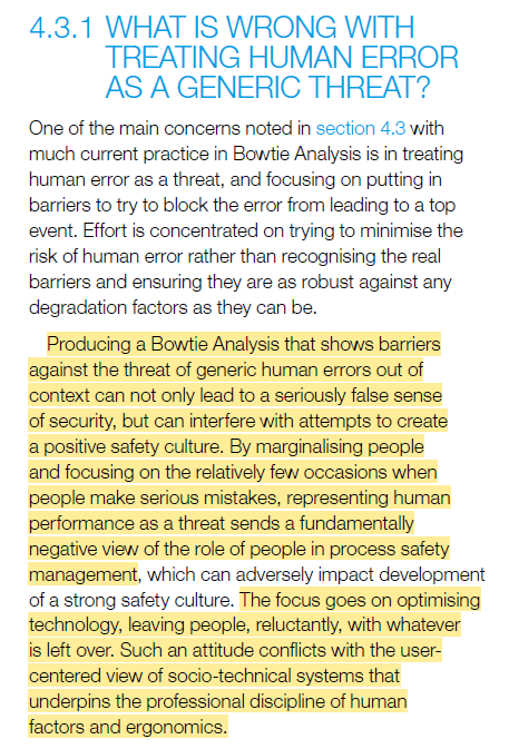 The authors continue their arguments on why “human error” isn’t useful as a threat to barrier integrity, nor top events. Further, the spectrum of performance variability is necessary in order to understand performance in a complex system.