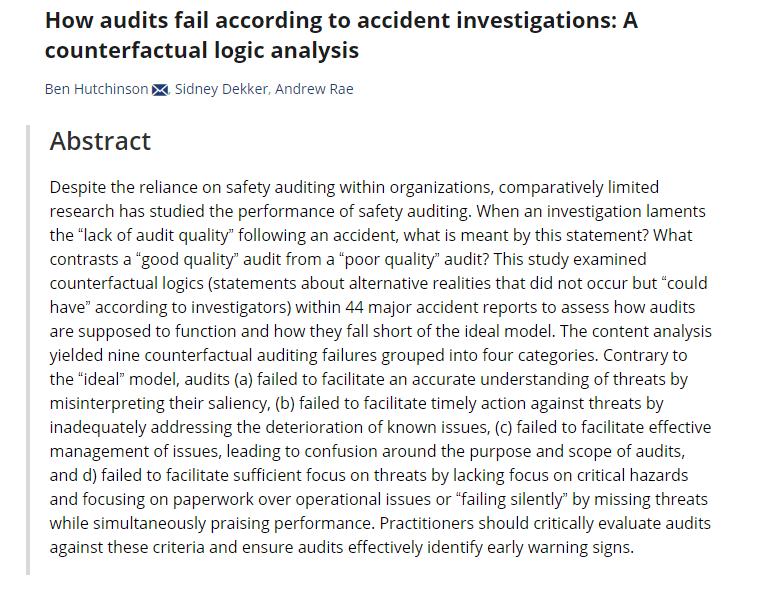 - https://safety177496371.wordpress.com/2024/01/28/my-latest-paper-on-audit-failures-a-counterfactual-analysis-based-on-44-major-accident-reports/
