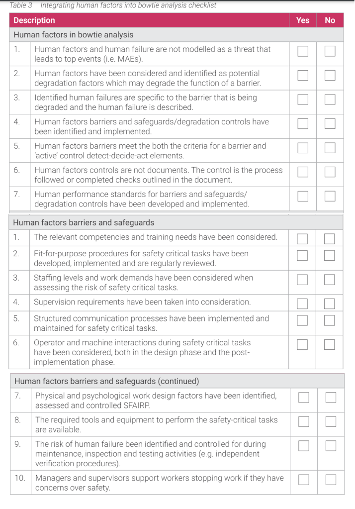 WA Department of Energy, Mines, Industry Regulation and Safety. Information Sheet – Human factors: Integrating human factors into bowtie analyses of major accident events.
