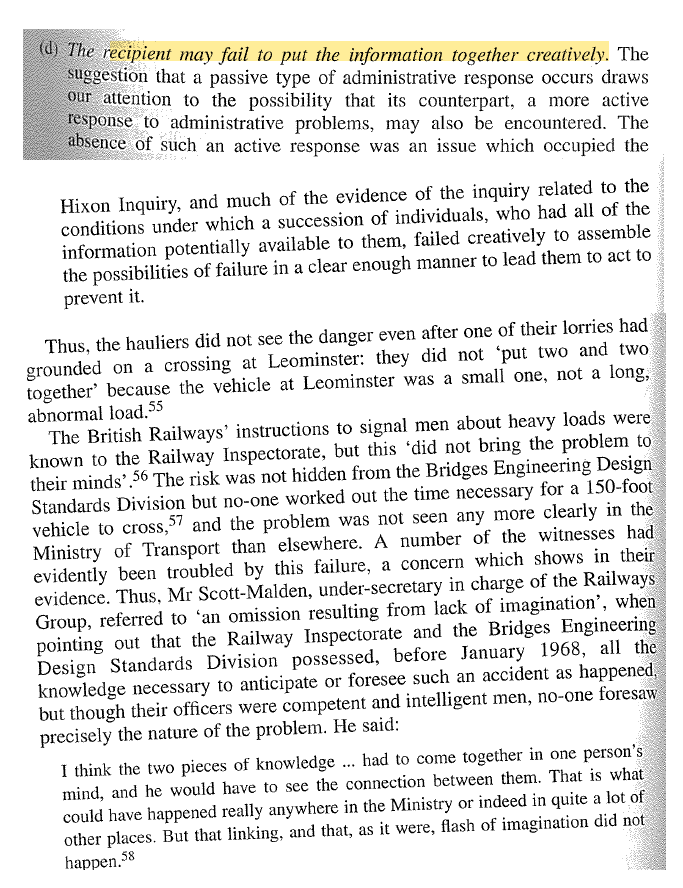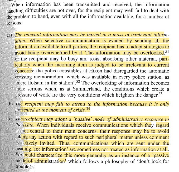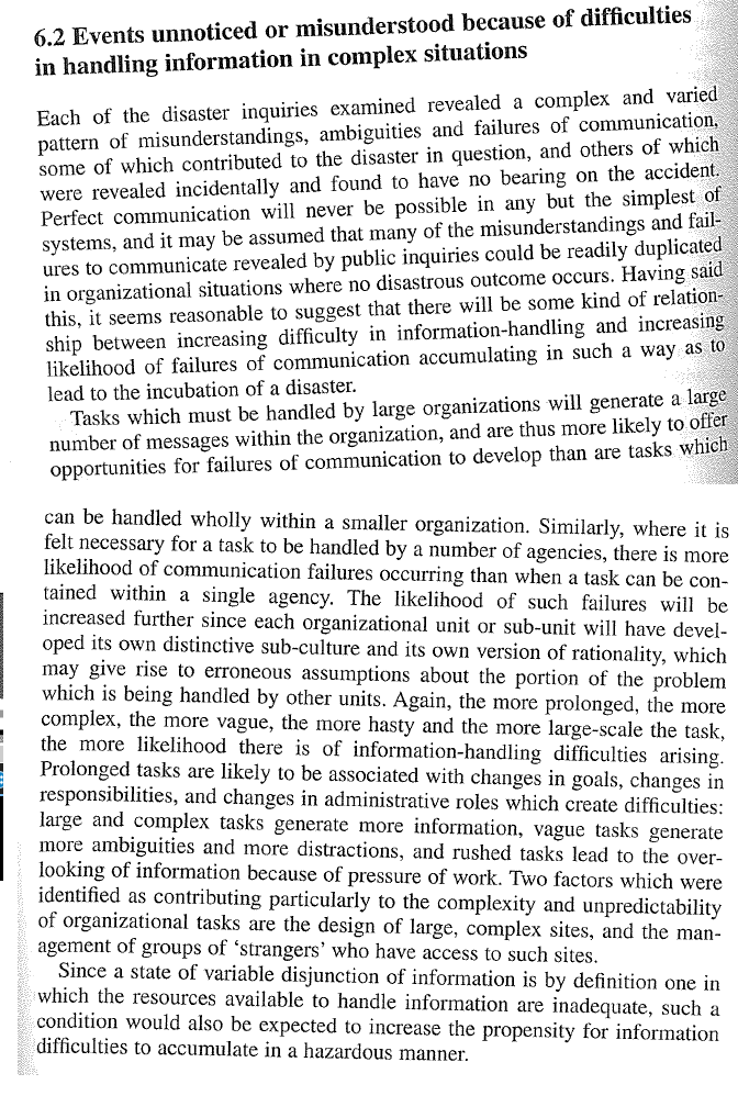 · A “variable disjunction” of information, where resources to handle info is inadequate, is likely to “increase the propensity for information difficulties to accumulate in a hazardous manner”