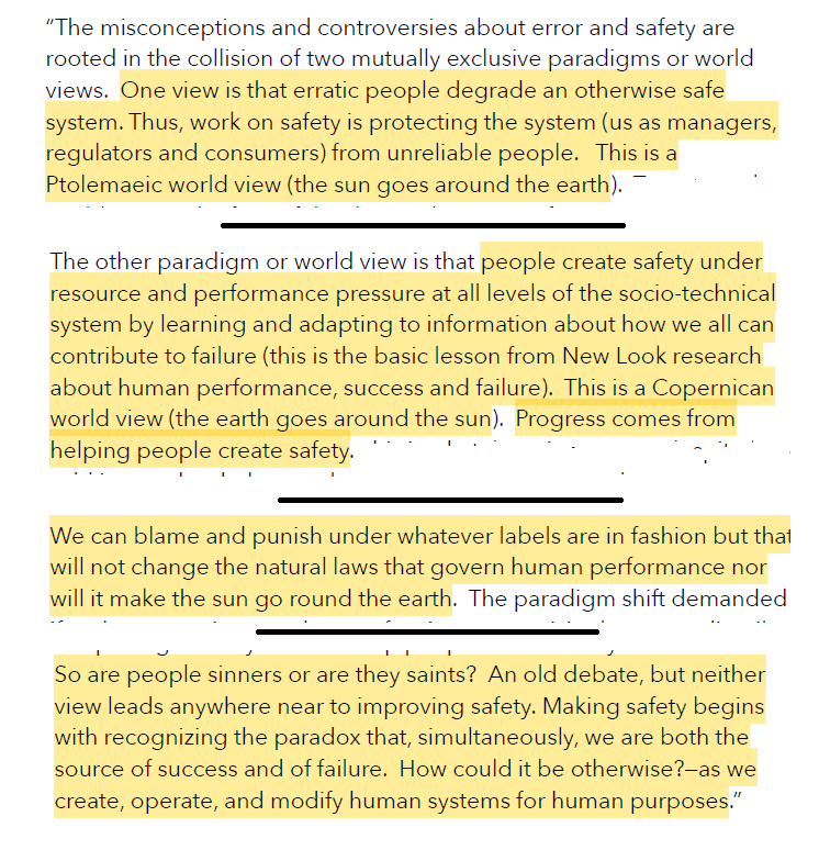 · In the final image, they discuss different perspectives of people: one of an erratic role in degrading otherwise safe systems, and the other is how people create safety under resource and performance pressure.