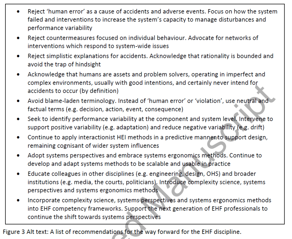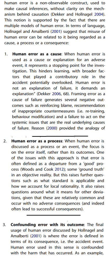 Also discussed was the human error construct within ergonomics & human factors (EHF), some “key conceptual difficulties” that the human error construct faces in a systems era of EHF, and then a way forward is proposed by the authors.