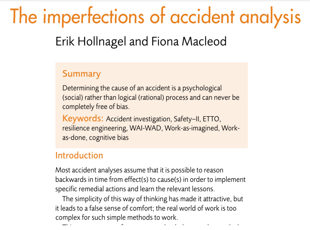 Ref: Hollnagel, E., & Macleod, F. (2019). The imperfections of accident analysis. Loss Prevention Bulletin, 270(3), 2-6.