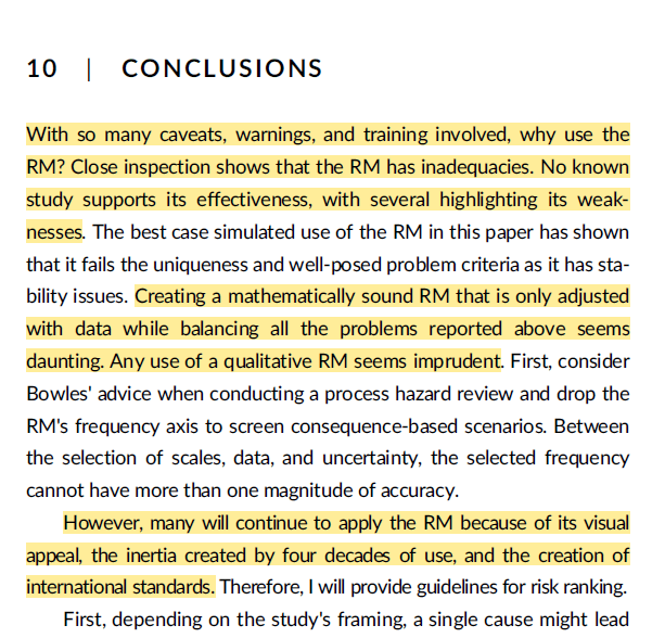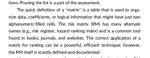 · “The Risk Matrix is a Likert preference system that has migrated into engineering and science. No testing or mathematical foundation was found [by the author]”