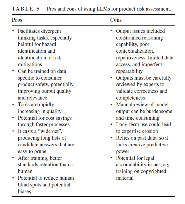Ref: Collier, Z. A., Gruss, R. J., & Abrahams, A. S. (2024). How good are large language models at product risk assessment?. Risk Analysis, 1–24.