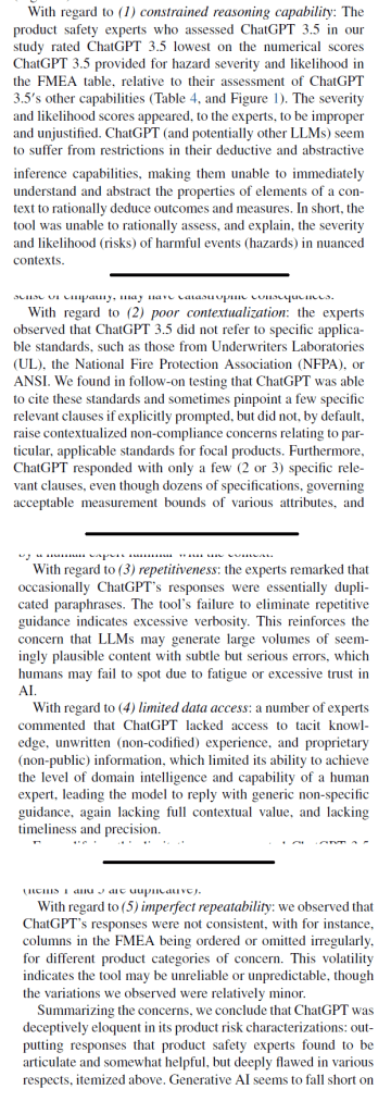 · They say “ChatGPT was deceptively eloquent in its product risk characterizations: outputting responses that product safety experts found to be articulate and somewhat helpful, but deeply flawed in various respects”.
