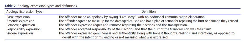 - Participants who received or were exposed to sincere apologies showed higher levels of forgiveness and trust compared to those that didn’t