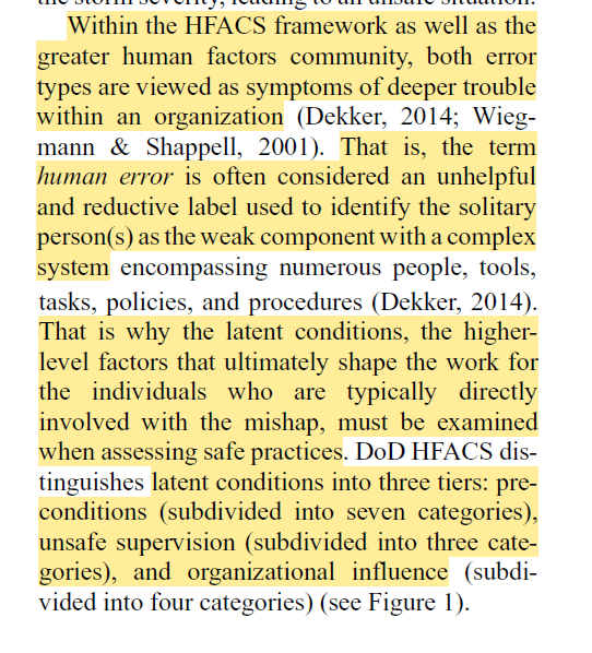 Ref: Miranda, A. T. (2018). Understanding human error in naval aviation mishaps. Human factors, 60(6), 763-777.