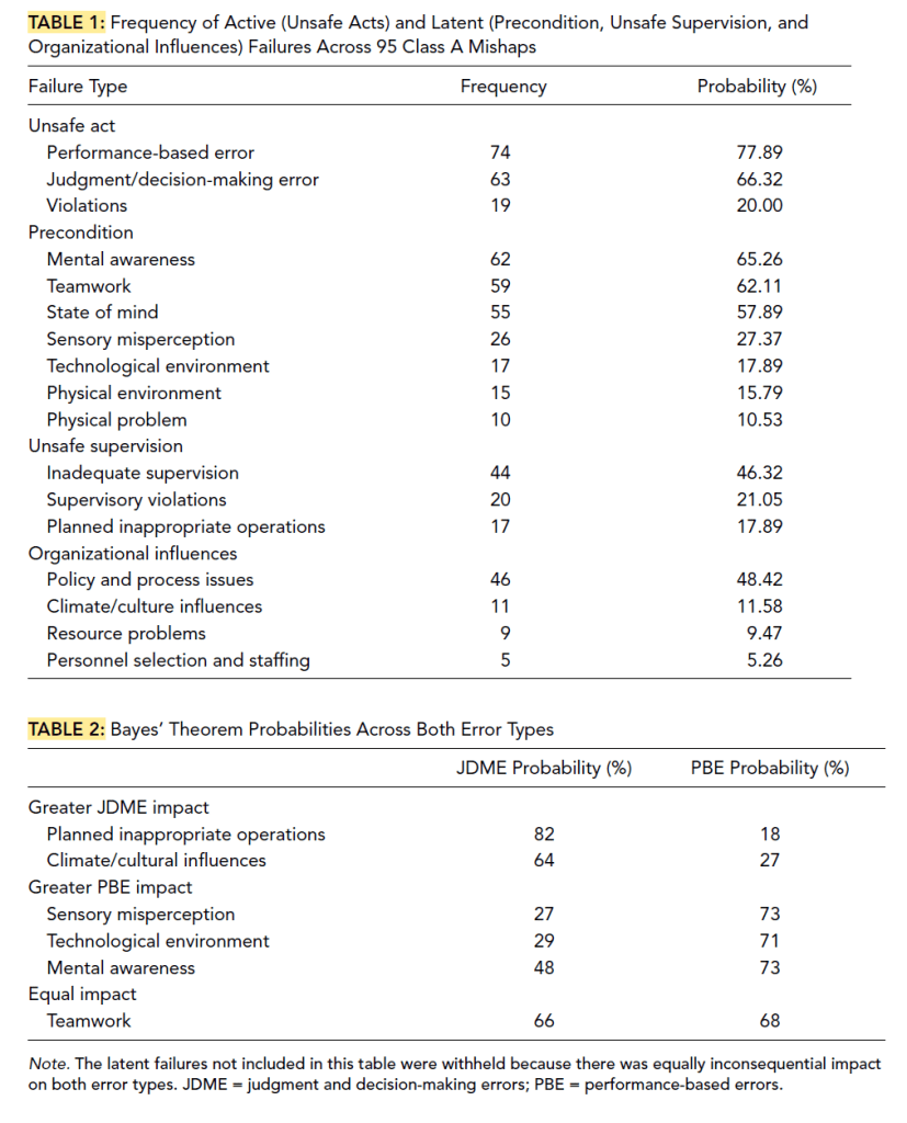 They drew on the delineation of errors into performance-based (PBE) and judgement/decision-making (JDME), as per the DoD HFACS model.
