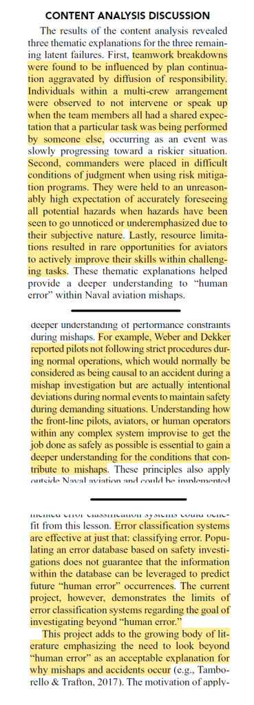 This was interesting – it studied 95 severe naval aviation mishaps.