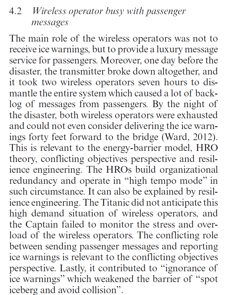 Ref: Kim, H., & Haugen, S. (2015). Titanic viewed from different perspectives on major accidents. Safety and reliability: Methodology and applications, 65-73.