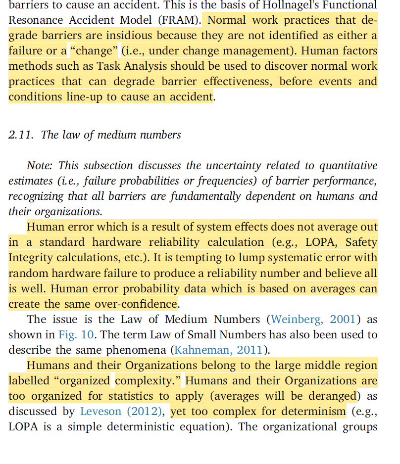 · Current approaches have emphasised “hardware reliability over human reliability”, which is “misleading because it blinds us to the reality that all barriers are fundamentally human”