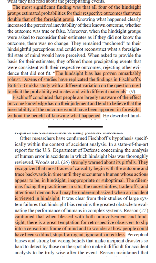 · “Hindsight bias remains the primary obstacle to accident investigation”