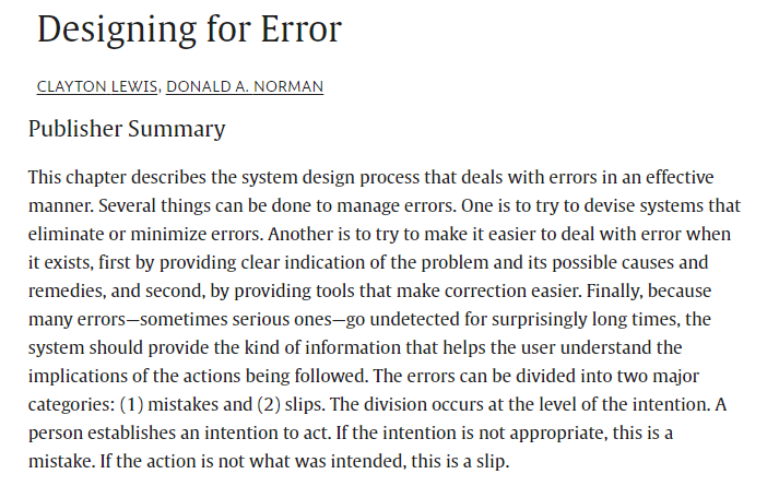 Another earlier (1995) banger from Don Norman and colleague on designing for error. This is a larger summary.