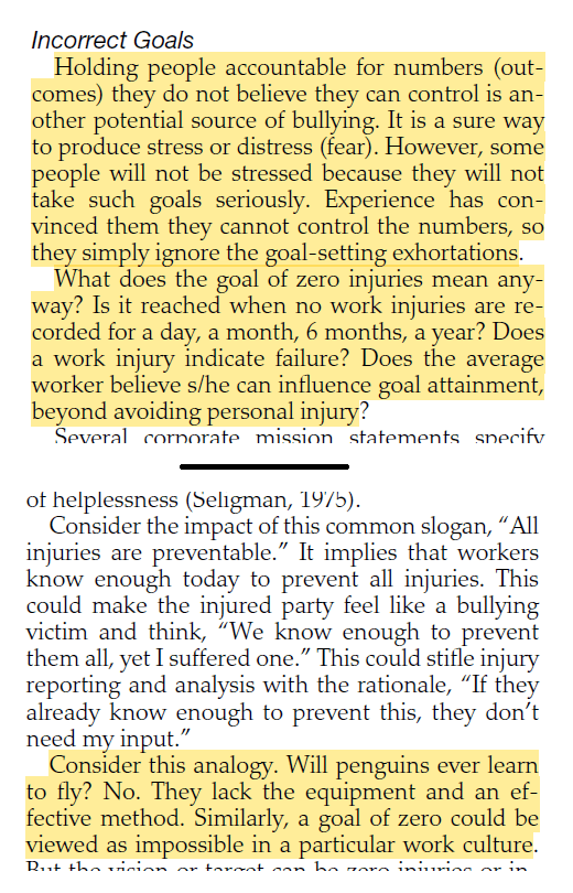 - Setting Zero Injuries as a Goal: “Setting safety mandates or expectations too high can be perceived as bullying as well”