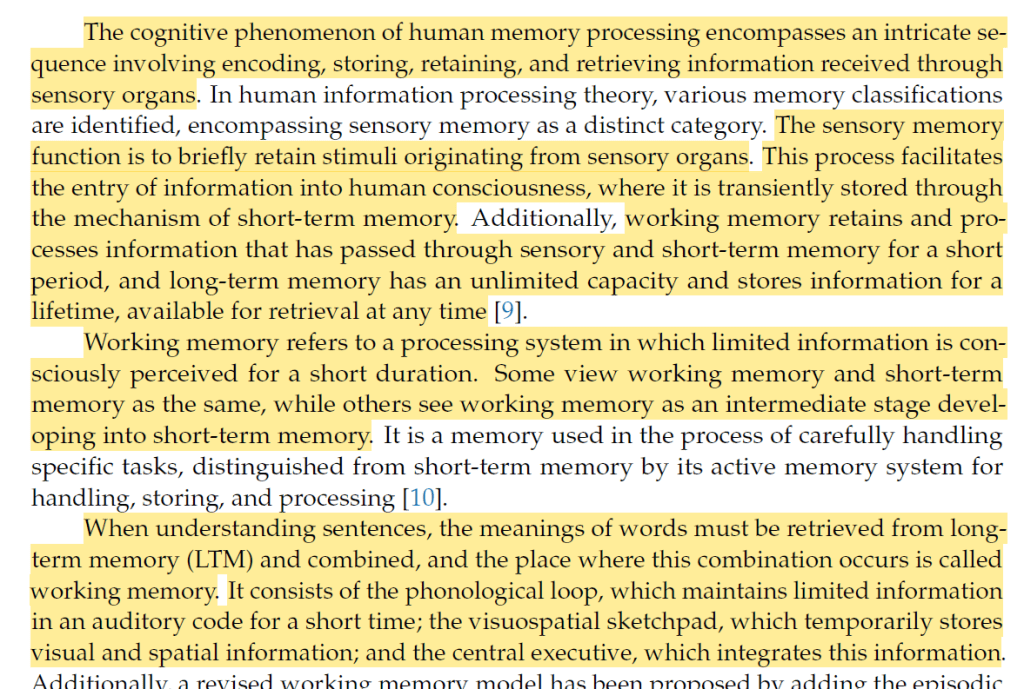 - “Humans receive external stimuli and information by interacting with their surroundings, and the received information is processed in the human cognitive memory system”