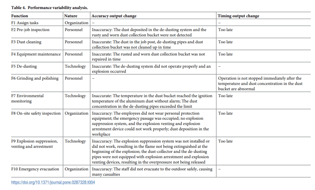 Ref: Zhang, M., Zhang, L., Cao, X., Li, B., & Zhou, A. (2023). FRAM-based causal analysis and barrier measures to mitigate dust explosions: A case study. PLoS one, 18(6), e0287328.