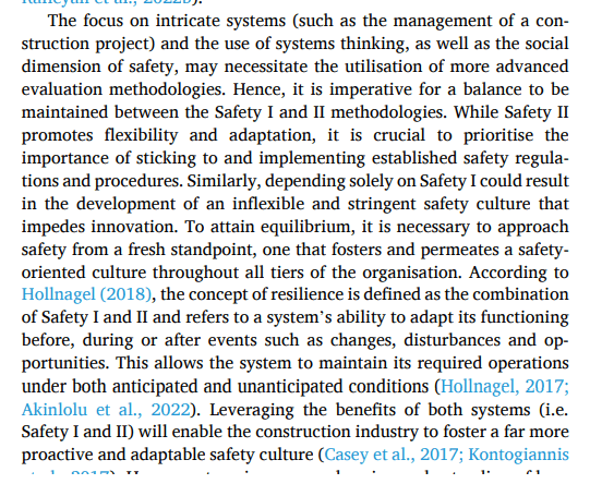 This research synthesis may interest people – it evaluated 35 Safety-I & Safety-II papers relating to construction safety.