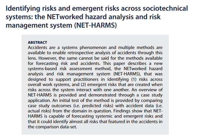 · Finally, the findings “show that NET-HARMS is capable of forecasting systemic and emergent risks and that it could identify almost all risks that featured in the accidents in the comparison dataset”