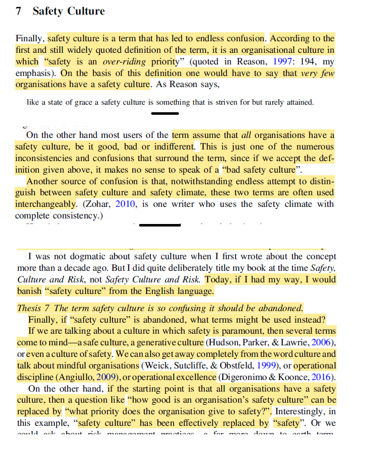 Off the bat he says “safety culture is a term that has led to endless confusion”.