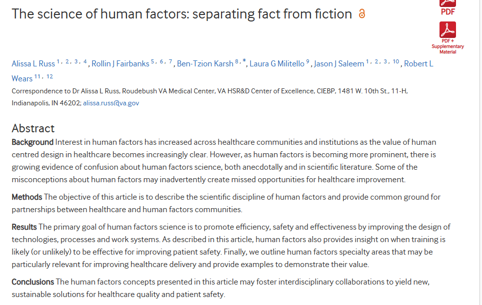 This brief read discussed some of the misconceptions about human factors for healthcare improvement.