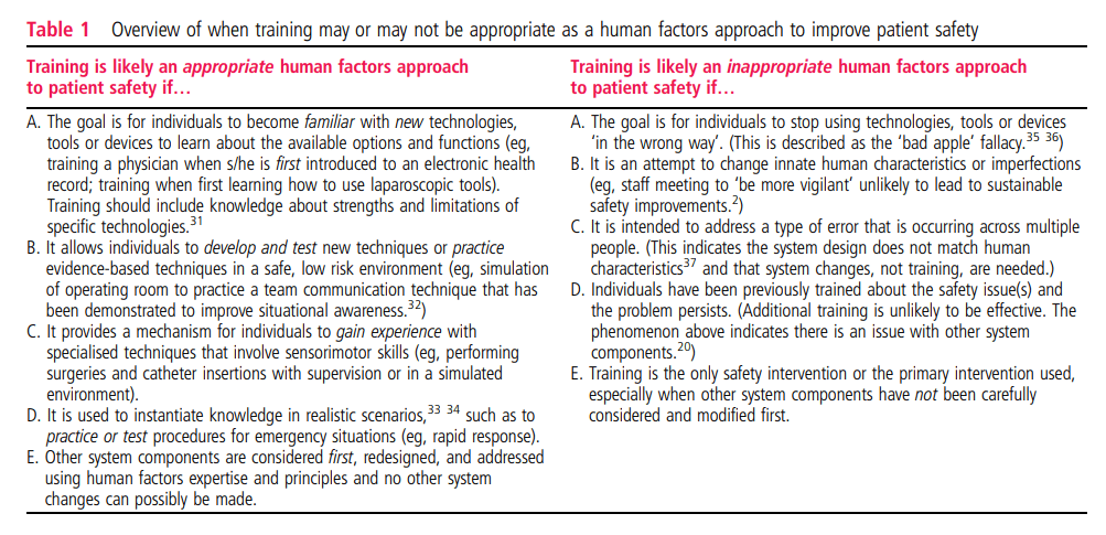 They discuss where training interventions are likely to be appropriate vs not appropriate.
