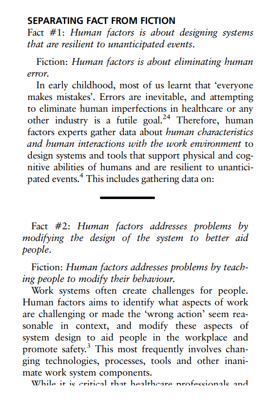 · Fiction #4: Human factors consists of a limited set of principles that can be learnt during brief training.