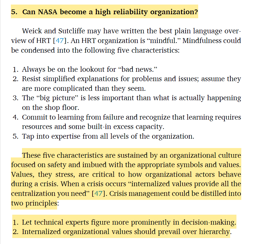 Next the author addresses whether NASA can become a HRO. I’ve skipped a lot in this section.