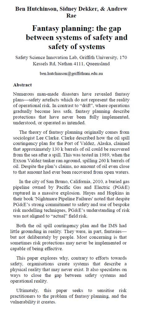 Study link: https://www.researchgate.net/publication/325395758_Fantasy_planning_the_gap_between_systems_of_safety_and_safety_of_systems
