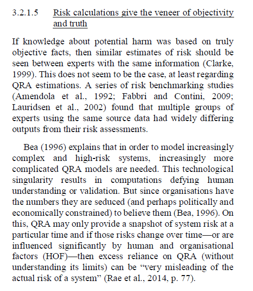 It covers a range of topics around symbolic safety, false assurance, ‘fantasy planning’, and catastrophic accidents which seemingly took organisations by surprise (considerably via mismatches in their perceptual horizons and assumptions of safety).