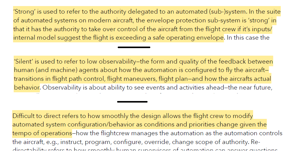 They argue that “the design for supervisory management of MCAS as part of a suite of automated systems for different aspects of flight was virtually non-existent” and is a “compelling exemplar” of what can happen when poor design of supervisory management combines with high authority/high autonomy automation.