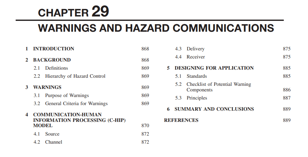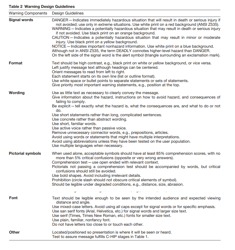 Ref: Wogalter, M. S., Mayhorn, C. B., & Laughery Sr, K. R. (2021). Warnings and hazard communications. Handbook of human factors and ergonomics, 644-667.