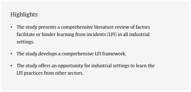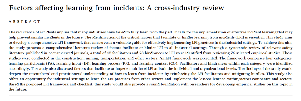 2 thoughts on “Factors affecting learning from incidents: A cross-industry review”