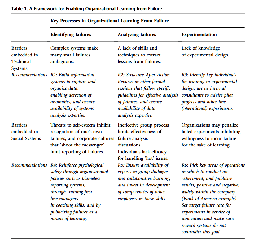Cannon, M. D., & Edmondson, A. C. (2005). Failing to learn and learning to fail (intelligently): How great organizations put failure to work to innovate and improve. Long range planning, 38(3), 299-319.