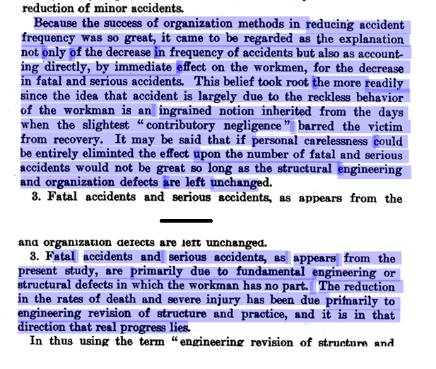 · “It may be said that if personal carelessness could be entirely eliminted the effect upon the number of fatal and serious accidents would not be great so long as the structural engineering and organization defects are left unchanged”