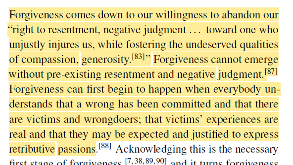 · Instead, forgiveness “offers a morally serious alternative. It facilitates accountability, restoration, and healing without trivializing the ethical weight of the harm done”