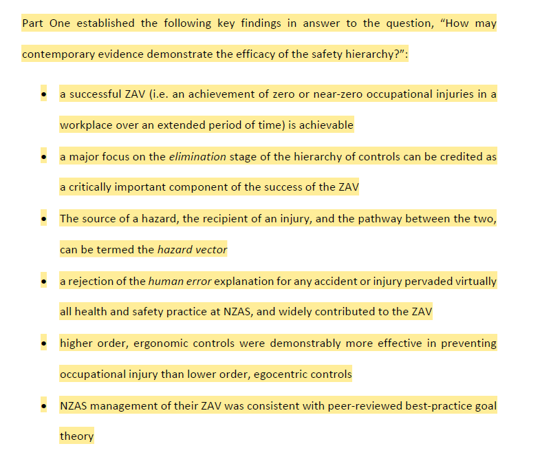 · “major focus on the elimination stage of the hierarchy of controls can be credited as a critically important component of the success of the ZAV”